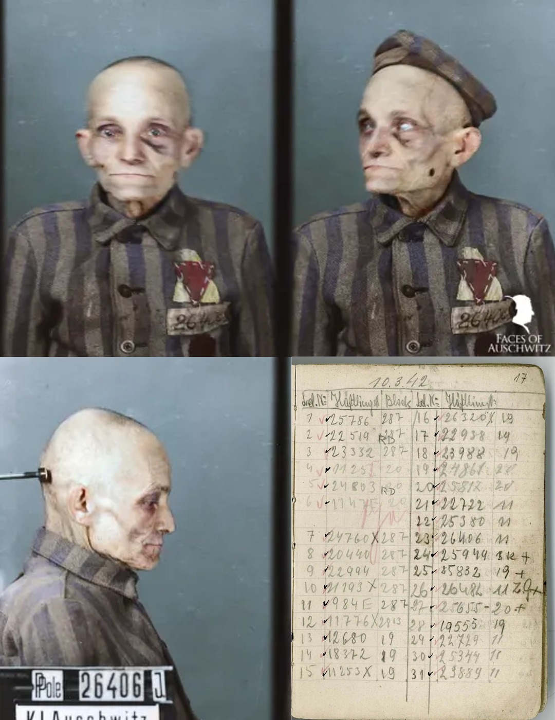 Aron Löwi era un mercante ebreo di Zator , una cittadina polacca. Il 5 marzo 1942, il suo nome fu ridotto a un numero: 26406. Trasferito dalla prigione di Tarnów ad Auschwitz, aveva 62 anni: abbastanza vecchio da aver conosciuto una vita piena, abbastanza giovane da sperare ancora nella pace. Morì cinque giorni dopo , il 10 marzo 1942 .