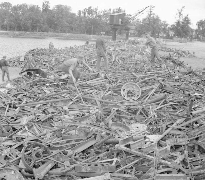 Pulizia dopo l’occupazione : il governo militare e le autorità locali fecero raccogliere le scorte rimanenti; ciò creò dei veri e propri ” cimiteri di equipaggiamento “.