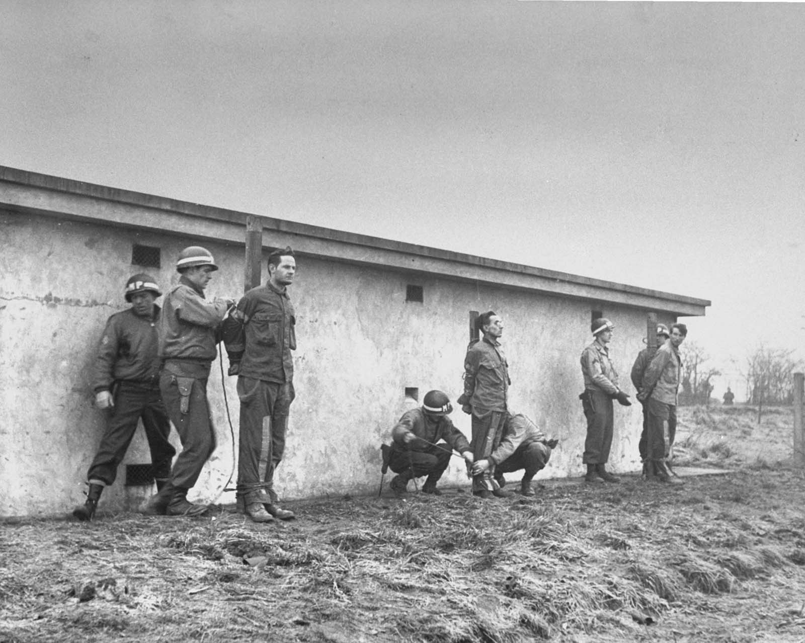 Infiltrati tedeschi furono messi in fila per essere fucilati a morte dopo essere stati condannati da un tribunale militare per aver indossato uniformi statunitensi durante l’Offensiva delle Ardenne. 23 dicembre 1944. Foto: https://rarehistoricalphotos.com/german-commandos-captured-american-uniform-1944/